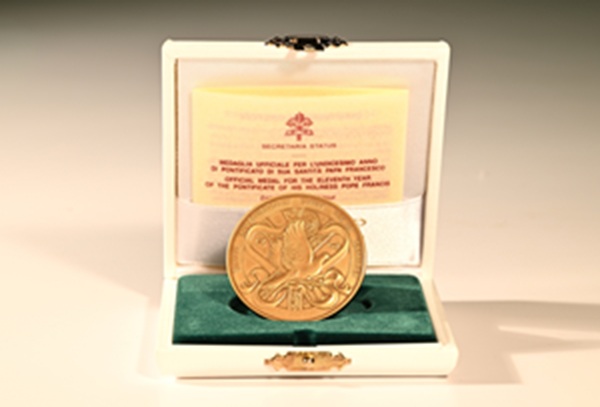 教宗方濟各頒贈慶祝其就任11周年的宗座勳章予洪博士。