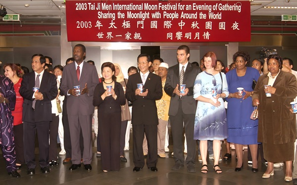 2003年太極門舉辦《世界一家親 國際中秋團圓夜》,共有13國駐華使節代表及眷屬齊聚一堂。洪道子博士及夫人帶著各國使節分享象徵「世界一家」的大月餅,大家心手相連跨越種族與國界的藩籬,祝福在場貴賓將歡喜團圓的氣氛帶回自己的國家,當各國能認同彼此的文化時,全世界就會像一家人。