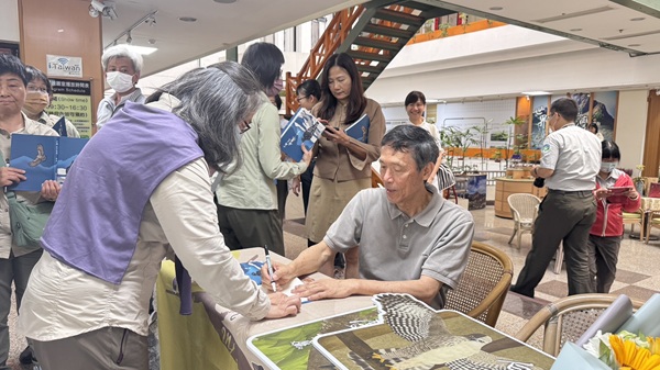 孫元勳在玉山國家公園《雲端上的白鷹》簽書會。