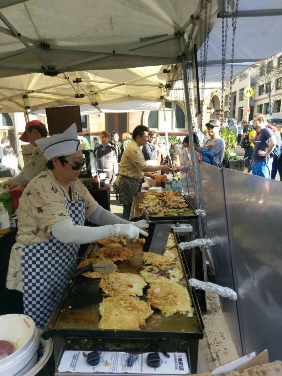 吃當然是重頭戲,有許多鐵板的攤位,有像煎餅般的東西,也有各式食材的煎烤
