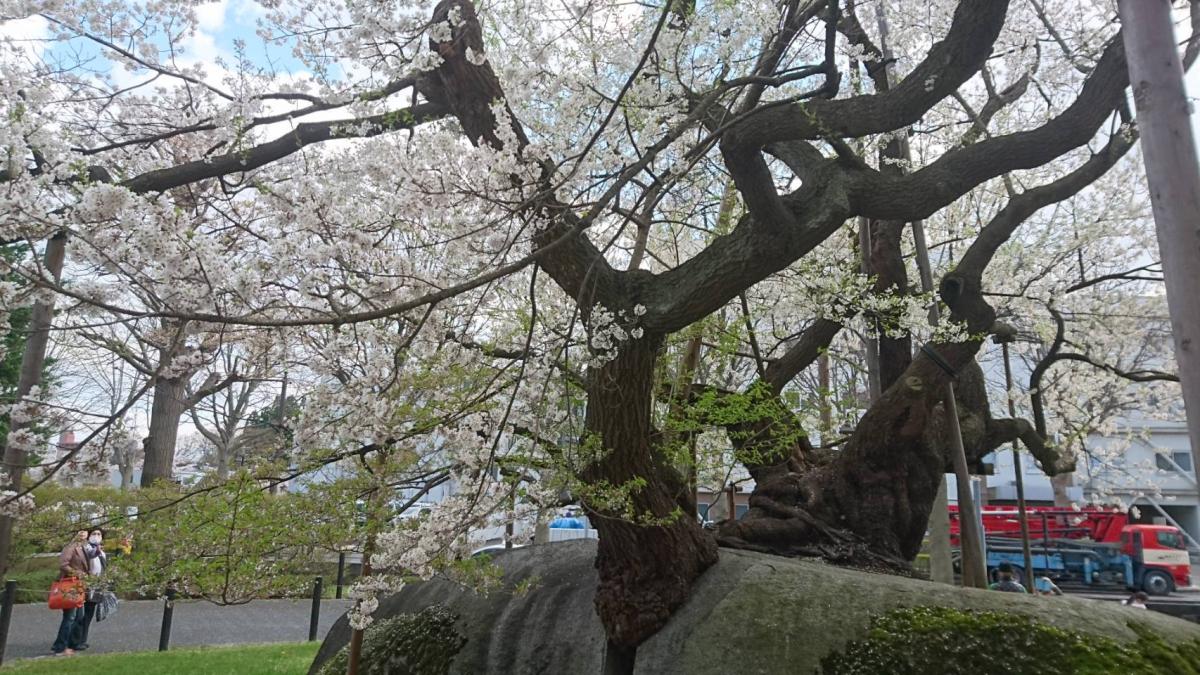 盛岡最有名的櫻花就屬裁判所前的石割櫻,從石頭縫中長出來的櫻花,在這三百年來,將石頭撐開21吋。