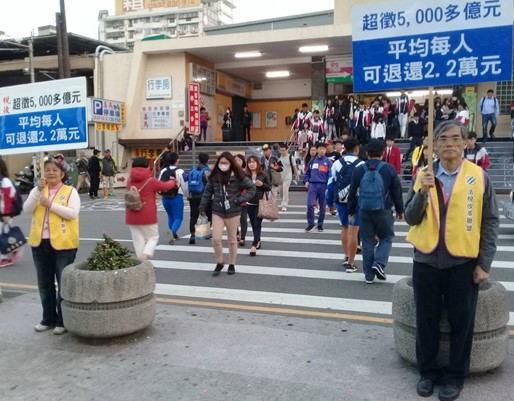 年輕人失業低薪,其中一個因素是台灣稅制不公,經濟不景氣連年超徵,造成企業出走,外資不來台灣投資,對於台灣困境,法稅改革聯盟志工,年過七旬結伴站出來,在車水馬龍的路口,人來人往的火車站前,志工們舉牌宣導「政府超徵5000多億元,還給人民,平均每人可退2.2萬元」,這些阿公阿嬤志工們拉起橫布條,訴求政府兌現承諾,現任總統蔡英文在2008年即支持超徵稅收退還給人民,全民一起提醒政府實踐承諾,並邀約路人連署:稅改五大訴求、稅改十大建言以及賦稅人權宣言。