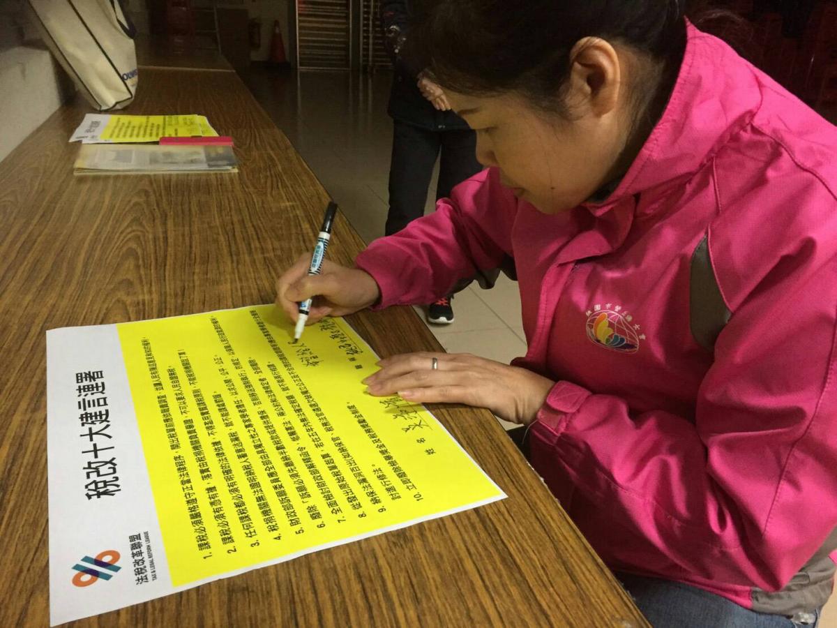 法稅改革聯盟推動「法稅真改革 良心救台灣」活動,年初在中壢區中正公園舉辦「反超徵廢獎金、稅改救低薪」活動,當時桃園市長鄭文燦、20位市議員、200位里長共同連署「稅改十大建言」,敦促政府聽到人民的聲音,超徵稅收還給人民,每人2萬2000元,呼籲搶救台灣賦稅人權。如今在志工的努力下,桃園市已有465位里長完成連署,為民眾身先士卒。