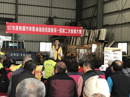 「法稅真改革 良心救台灣」,稅法改革是全民共識,法稅改革聯盟在4月15日應新屋區後湖里姜禮德里長、後湖居民協會劉慶昌理事長邀請,在居民大會時進行法稅宣導,邀請里民一同關心自己的權利。