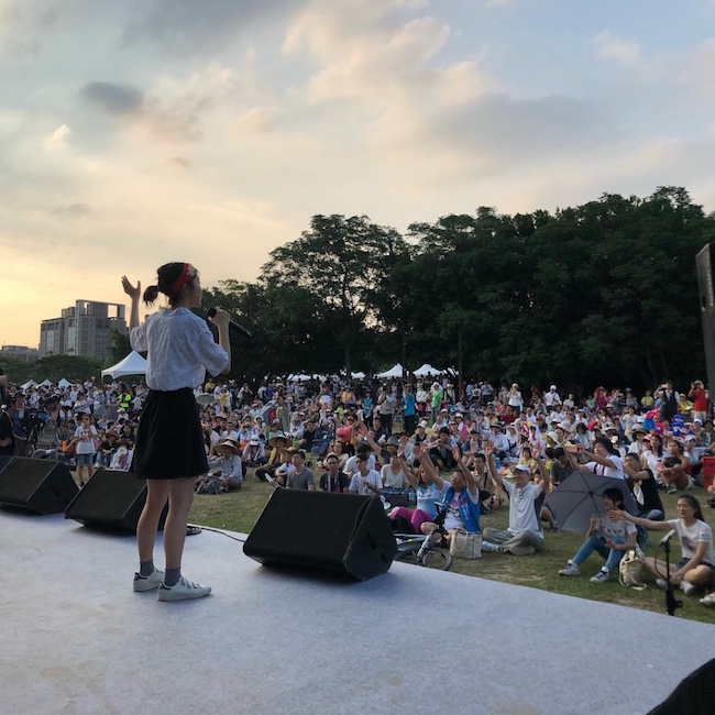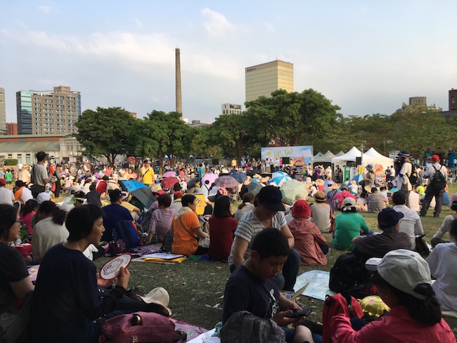 台北市27日創下122年來5月最高溫紀錄,民眾無畏熱浪侵襲,不但未減熱情,更是攜老偕幼,創意十足,全家出動一起為台灣的未來而走。