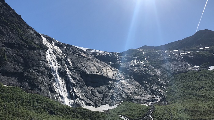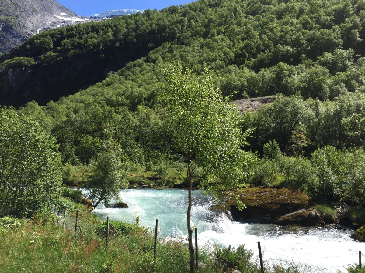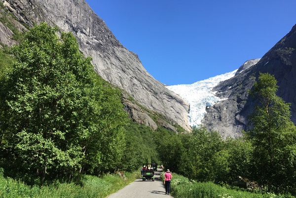 繼續沿著登山小徑上行,下了車以後,再走一小段山路,約15 分鐘就可抵達布麗斯達冰河所在位置,路途一樣山明水秀,讓旅人享受挪威的幽靜。