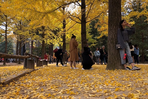 台灣看不到黃通通的銀杏,韓國卻是到處種銀杏,樹下仰望那一片的黃,心中不禁溫暖起來。