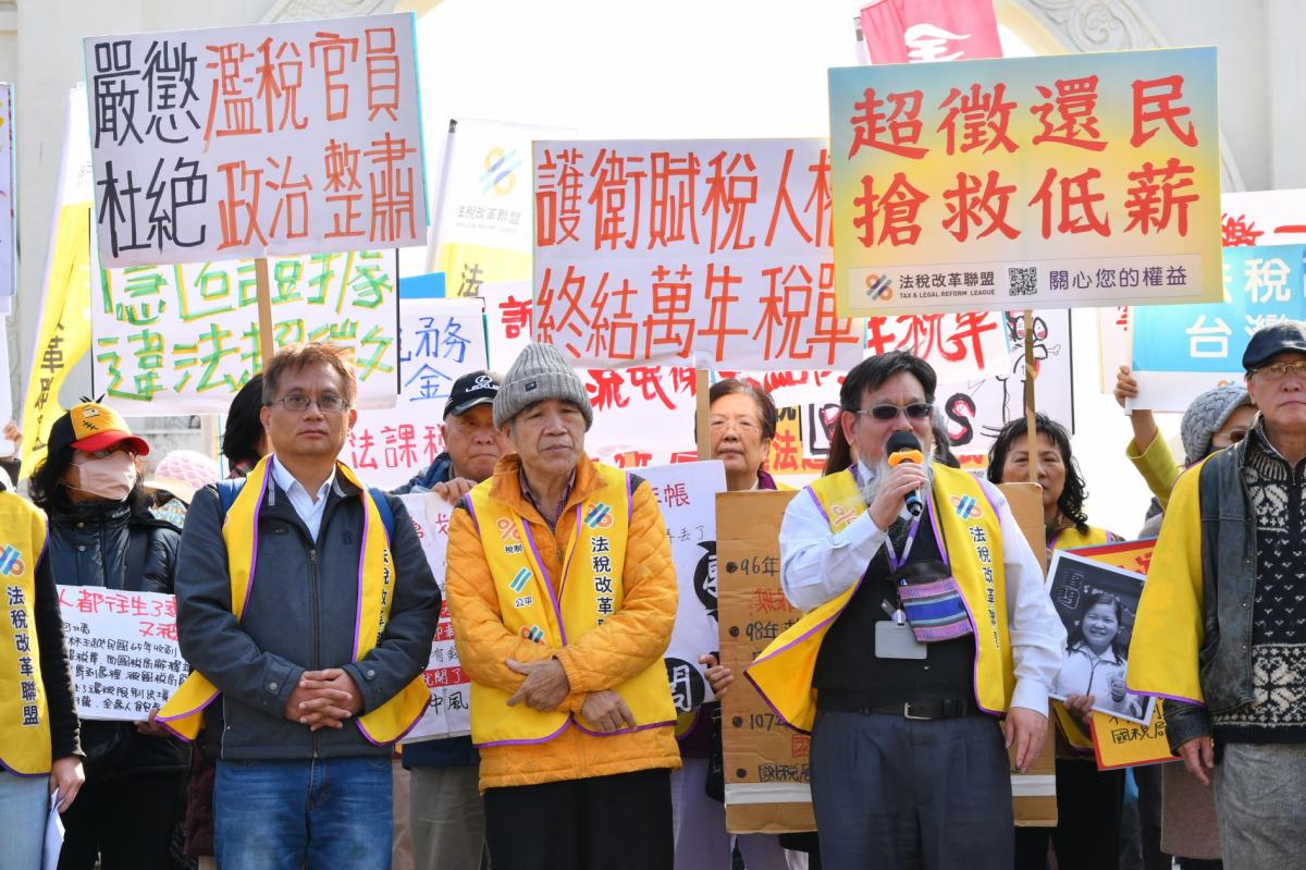 訴願繳一半,繳不出就強制執行,扣押財產,限制出境,甚至管收入監,根本剝奪並侵害人民訴願權、財產自由及行動自由,都已經違反憲法,違反國際人權兩公約。包括法盟發起人真理大學法律系所副教授吳景欽、德國歐斯納布魯克大學駐台教授連福隆、台灣北社理事陳逸南等專家學者及許多稅災戶,都來到現場踢爆財稅黑幕與威權餘毒。