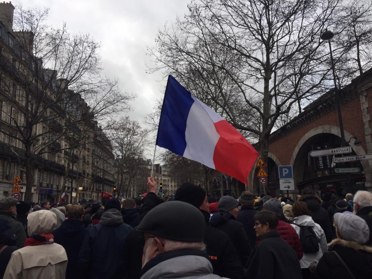 巴黎星期天的天氣又冷又雨,但受不了黃背心暴力行為的上萬巴黎人,一起走上街頭,顯示安靜的群眾是有不同聲音的。
