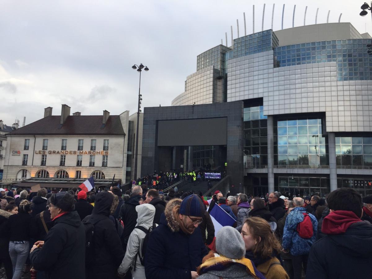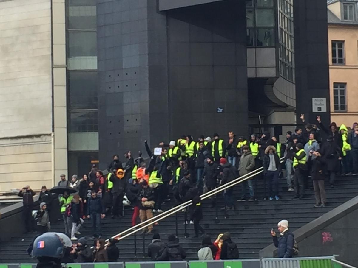 終點巴士底廣場,黃背心出現挑釁,找人吵架,還有一群站在歌劇院前對峙。黃背心的暴力傾向讓人害怕,警察只好站在兩群人中間擋著,以免暴發衝突。
