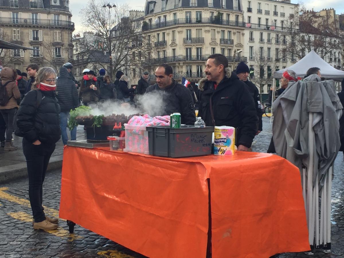 這場平和的遊行,最後主辦單位為防止黃背心故意找麻煩,演變成難以收拾的火爆場面,最後大家在喊完口號後各自解散。下圖/遊行盡頭還有小吃攤,好台式的作法(人潮在哪生意就在哪)