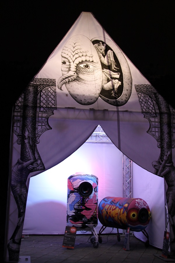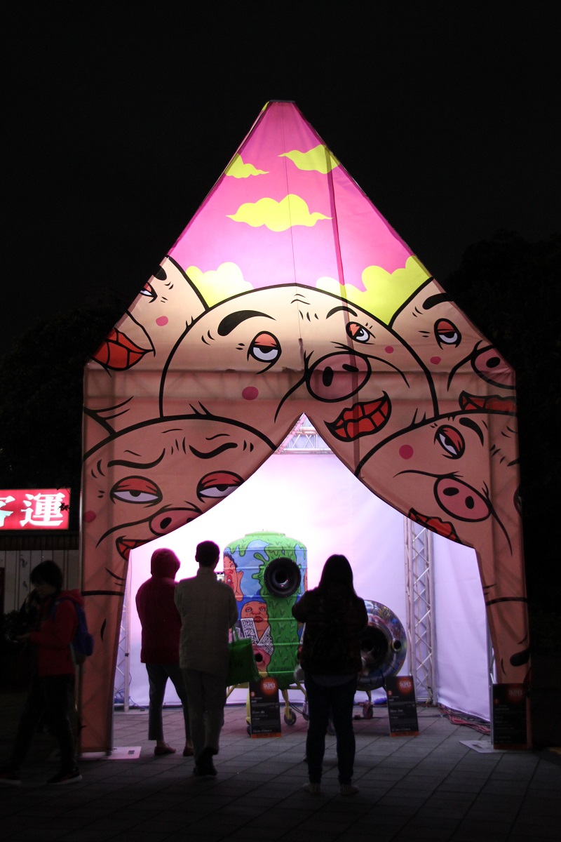有別於去年有許多藝術家參與創作現代花燈,今年只在北門捷運出口有「塗鴉夢想家的基地」。