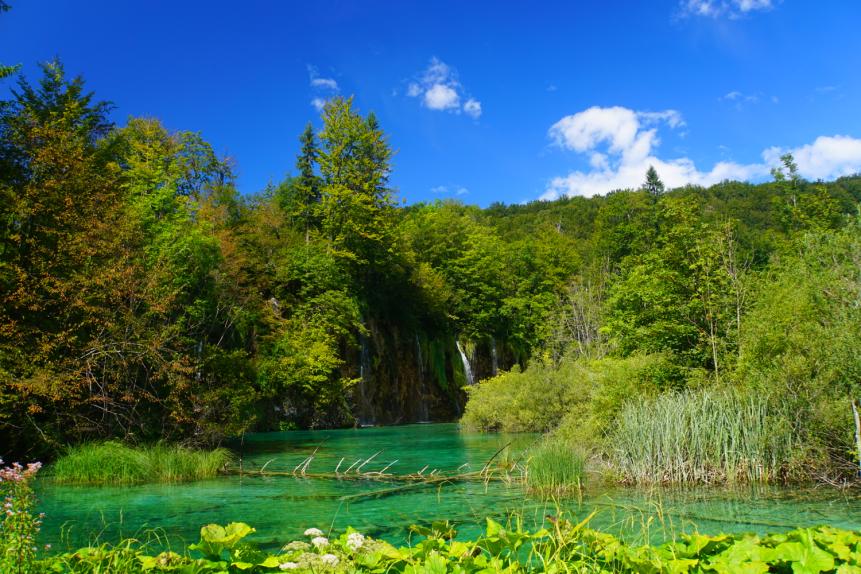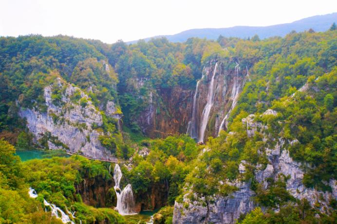 喀斯特地形的十六湖國家公園,呈現石灰岩與水蝕的特殊景觀,被稱為「歐洲九寨溝」。除了天然瀑布、潺流細水、清澈湖泊,還有湖面下縱橫交錯的樹根,不管從哪個角度欣賞,都能讓人留連忘返。