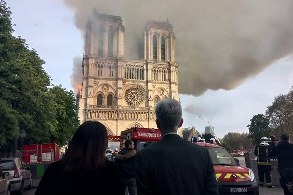 巴黎市的象徵地標、亦是法國最重要的古蹟建築-巴黎聖母院(Notre-Dame Cathedral),在當地時間15日傍晚發生重大火災,在近4小時、400多名消防人員的搶救下,成功控制火勢,並保住聖母院的主體建築及兩座鐘樓,及內部多數的藝術品,但中央尖塔塌陷,當局推測起火原因與近期正在進行的修建工程有關。