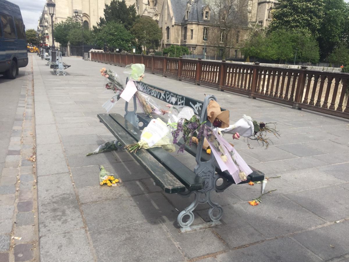 至於附近商家,雖然人潮依舊,但聖母院旁的愛斯梅達(Esmeralda)咖啡館老闆娘說:她火災後無法營業,被迫停業一週,損失不小,現在人潮都來拍照、觀光,很多過門不入,老闆娘大嘆時機歹歹!