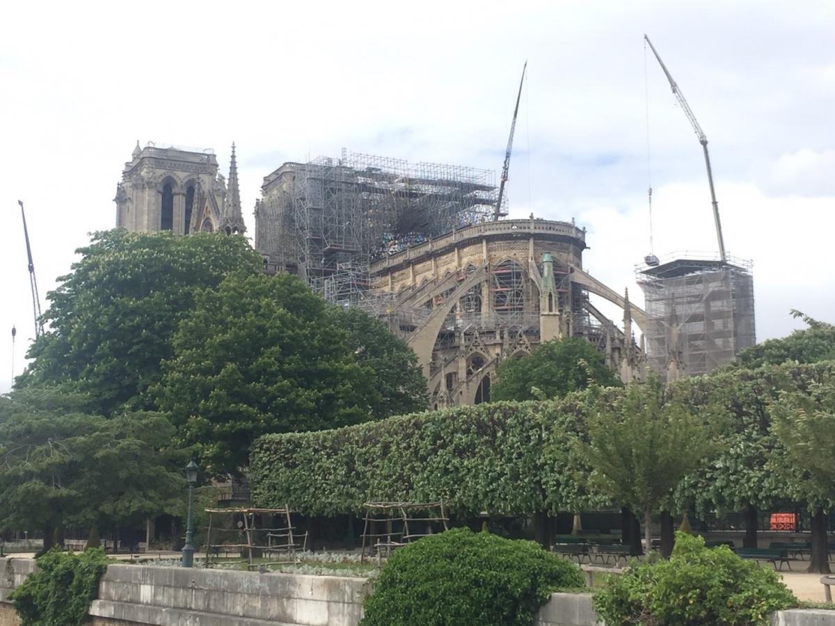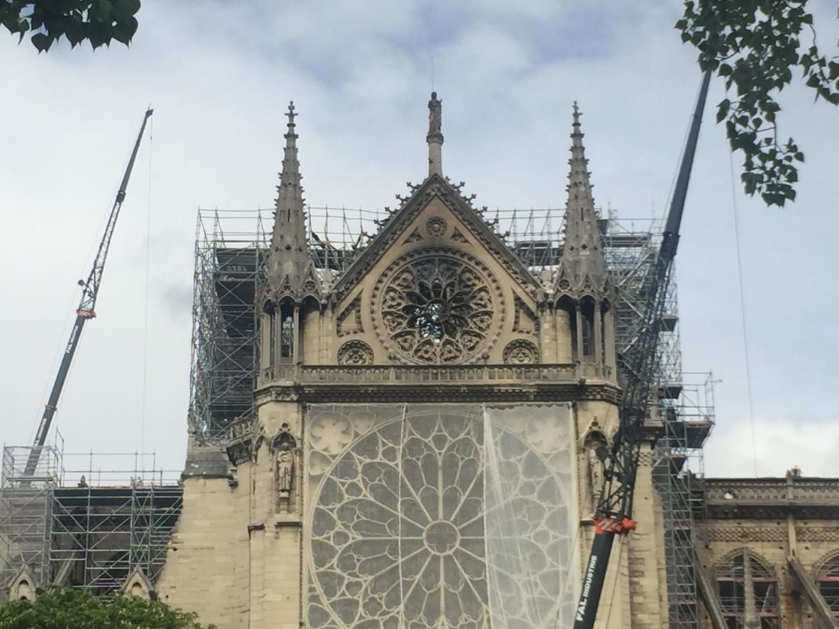 本週,巴黎轉為陰雨天氣,為防止大雨進一步損害被祝融脆化的結構,工人在聖母院覆蓋防水布。乍看之下,火災的痕跡並不明顯。正常情形下,這樣的損害需要十幾年、甚至幾十年的時間才能修復。馬克宏豪氣萬丈地希望五年內就能修復。是否有可能?很可能需要看法國政府最後決定是否照原樣修復,或者更新設計。