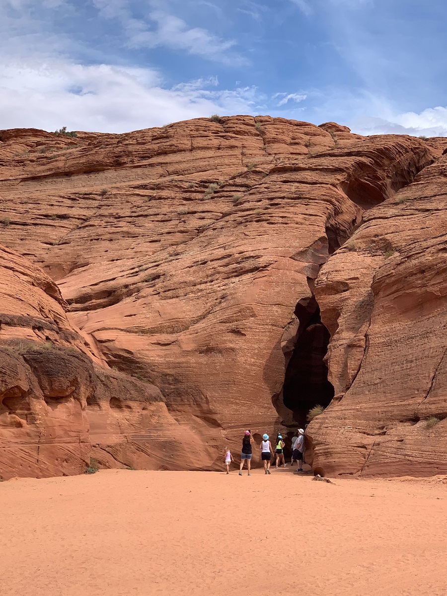 羚羊峽谷遠看只有一條很細的裂縫, 當年如何發現已不可考,根據納瓦荷族的歷史傳說,這裡曾是叉角羚羊的棲地,峽谷裡也常見羚羊漫步,因而得名。進入狹縫裡,與世隔絕,有著一種完全靜默的氛圍,老一輩的納瓦荷族人曾將此地視為靜思與大靈溝通的棲息地。但如今每半小時一批遊客進入,紛紛雜雜,攝影師想要避開人群取景拍照都是一個難事。