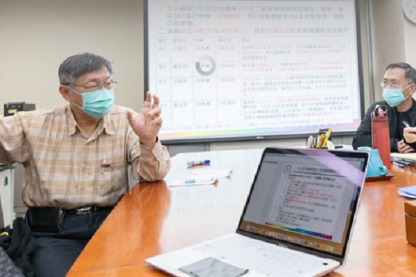 柯文哲在臉書上表示,為因應武漢肺炎,召集相關局處首長召開假日臨時會議,務求防疫措施一次到位。會議決定第一線人員須戴上口罩,並建議民眾戴上口罩,以降低傳染風險。經盤點後,全市醫療院所、衛生局的口罩與防護衣庫存量,都在法定安全儲備量之上,呼籲市民不必驚慌。