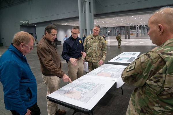 因應疫情緊繃,紐約醫療系統恐無法負荷,古莫也頒布緊急命令,要求全州醫院增加病床容量至少50%,但醫院仍面臨口罩、呼吸器、防護衣等物資不足的困境。而為促進經濟復甦,也同步評估讓痊癒並獲免疫力的民眾能逐漸回到工作崗位。而為緩解醫療資源短缺問題,美國總統川普(Donald Trump)日前已宣布將紐約州列為「重大災區」(major disaster area),由聯邦協助支援醫療物資。