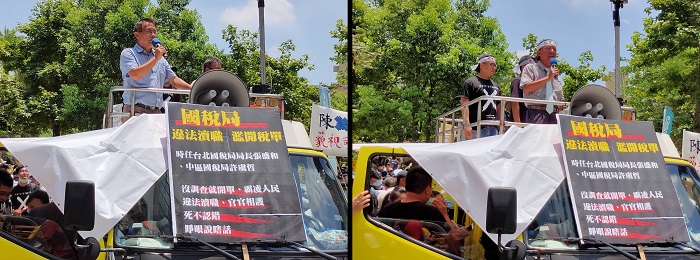 「為獎金不擇手段!」平反1219行動聯盟等聲援單位今天(13日)上午號召上千位民眾到行政執行署總署抗議行政執行署淪為打手,用稅單換獎金,假稅單換真鈔,用公權力强奪民產,官兵變強盜!同時在士林地檢署前,太極門多位弟子代表控告行政執行署署長林慶宗、副署長陳盈錦犯違法徵收罪。