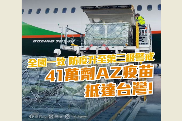 疫情指揮中心於下午召開的記者會證實,我國透過COVAX獲配的第二批AstraZeneca疫苗41.04萬劑,即將於下午4時運達桃園國際機場。本批疫苗待完成通關程序後,直接運送至指定冷儲物流中心進行後續檢驗封緘作業,再提供COVID-19接種計畫所列實施對象進行接種。