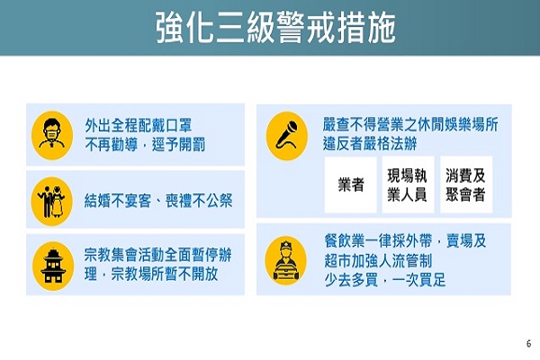 請全國民眾持續落實遵循,與政府共同努力,嚴守社區防線。相關強化措施及裁罰如下: