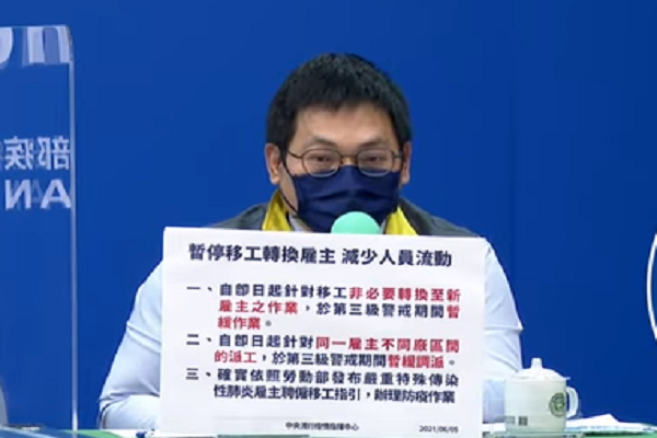 鑒於本土疫情嚴峻,應絕對禁止廠區和廠區間的移工流動。中央流行疫情指揮中心今(5)日表示, 地方政府及勞動部應協助苗栗某電子廠公司的移工避免離開宿舍,並於這段期間與地方政府合作,減少移工不必要的外出,以減少移工群聚發生。