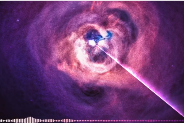 由於太空中大部分都是真空狀態,一般人認為太空中是沒有聲音。但是,星系團包裹住無數星系的「大量氣體」,卻能成為介質,提供聲波的傳遞。自2003年起天文學家發現,英仙座星系團中,黑洞發出的壓力波,於炙熱氣體引發波浪般的漣漪,一直發出聲音,可以轉譯為音符。這種音符比鍵盤的中央C,低大約57個八度,大約是降B音頻,人類的耳朵是聽不到。在新的聽覺化技術下,天文學家將這些經由錢德拉X射線天文台(Chandra X-ray Observatory)所取得的音波數據,轉譯且放大了144萬億倍與288萬億倍,以便人耳能聽到,並以影片方式公開。天文學家表示,這是人類目前發現最大的聲音,這個聲音的能量大約是相當於1億顆恆星爆炸,聲波振幅非常大,波長也很長。