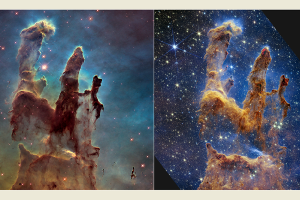 藉由韋伯太空望遠鏡的強大觀測能力,讓「創生之柱」(Pillars of Creation)的誕生過程盡收眼底。「創生之柱」外觀呈現柱狀,是「鷹星雲」(Eagle Nebula, M16)內恆星形成之區域;「鷹星雲」位於巨蛇座(Serpens),距離地球大約有7000光年左右。韋伯太空望遠鏡是目前最強大的太空望遠鏡,耗資近100億美元打造,其中主要目標之一是研究恆星的生命週期,另一個則是研究系外行星,亦即地球所屬太陽系以外的行星。