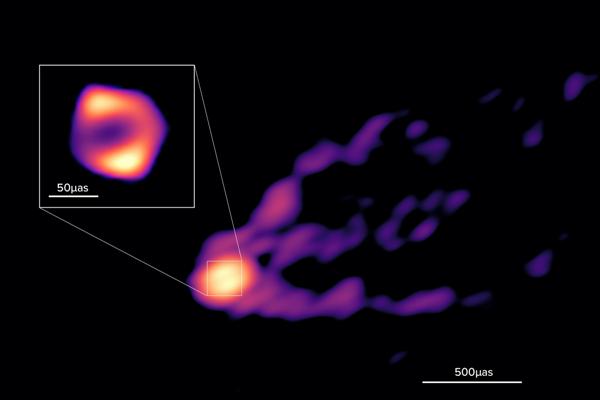 中央研究院天文及天文物理研究所與數個國際研究團隊合作,使用新的毫米波段觀測成功獲得影像,首度證實星系中心超大質量黑洞附近的吸積流與噴流起源間的聯繫,研究成果於今(2023)年4月發表在國際頂尖期刊《自然》(Nature)上。