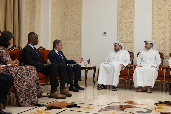 布林肯此次訪問,埃及和卡逹都與美國合作希望促成加薩停火,包括與卡逹國務部長Mohammed bin Abdulaziz Al-Khulaifi以及埃及總統塞西(Abdel Fattah el-Sisi)會面討論如何結束戰事。塞西表示,現在是停火的關鍵時刻,不應再讓中東的衝突擴大,造成更嚴重的後果;塞西也指出國際間承認巴勒斯坦為國家,實施兩國方案才是維持區域穩定的保證。