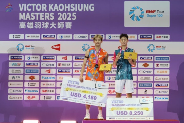 高雄羽球大師賽今天(28日)進行男單決賽,由王柏崴迎戰第一種子泰國年輕好手帕尼查彭,王柏崴在上個月的越南公開賽8強賽以一比二敗給帕尼查彭,今天王柏崴以12比21、21比18、21比12扳倒帕尼查彭,拿下生涯第1座巡迴賽的冠軍。
