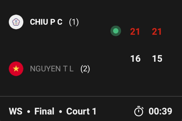 今天是邱品蒨與阮垂玲的第2次交鋒,第1局前段雙方進行拉鋸戰,邱品蒨在技術暫停後掌握節奏,以21比16拿下首局。第2局邱品蒨在4比6之際連得5分,然後一路領先,以21比15贏得比賽,只花了39分鐘就奪得生涯首座BWF巡迴賽冠軍。【記者 姜芮廉整理報導】