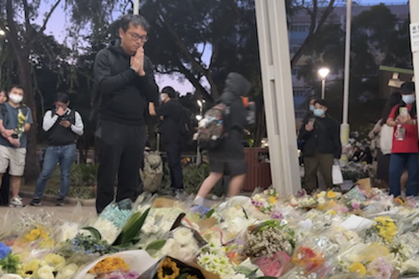 災後第5日,宏福苑現場仍瀰漫著燒焦味與悲傷的氣氛,大批市民自發前往大埔廣福邨社區中心及火災現場外獻花,花海延綿逾一公里,紙條上寫滿了「安息」、「願生者堅強」的字句。