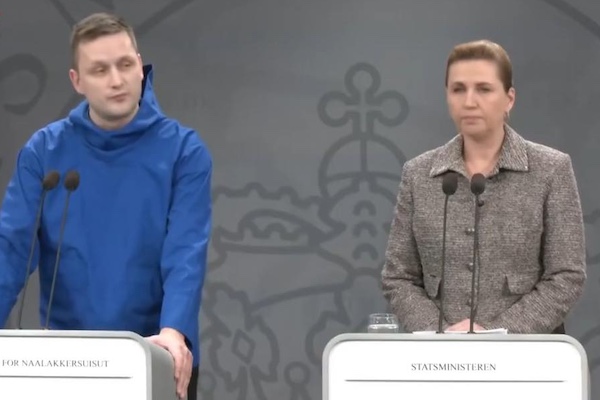 面對美國總統川普(Donald Trump)虎視眈眈地覬覦格陵蘭,格陵蘭總理尼爾森(Jens-Frederik Nielsen)與丹麥總理佛瑞德里克森(Mette Frederiksen)於13 日在哥本哈根舉行聯合記者會,正式回絕美方的併吞與收購要求。對此,川普強硬回應,不但輕蔑表示不認識格陵蘭總理,還對其發出警告。