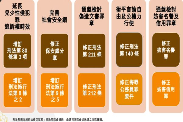 最後為修正妨害名譽及信用罪章之要件及刑度,法務部指出,鑑於以廣播、電視、通訊、網路或深偽技術等特定犯罪手段犯本章之罪者,嚴重侵害人民之名譽及信用,新增加重處罰規定。另外提高公然侮辱、誹謗等罪之罰金刑刑度,以符合比例原則及罪責相當原則。【記者 蔡青芸整理報導】