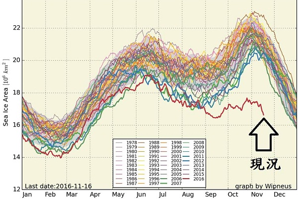 全球氣候變遷,使得2016成為有紀錄以來最熱的一年,北極部分地區的平均溫度至少高於長期均溫3度,氣象局預報中心主任鄭明典在臉書表示,海冰對全球氣候的穩定有很大的影響,根據美國冰雪數據中心(National Snow & Ice Data Center)數據圖顯示,...