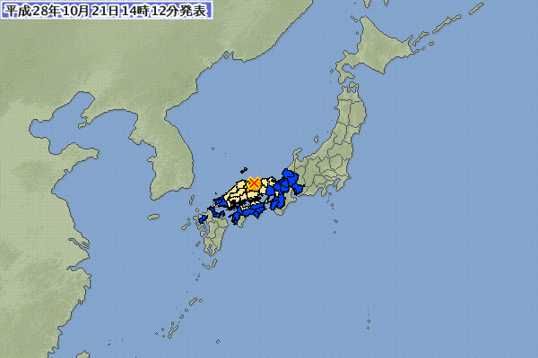 日本鳥取縣於日本時間21日下午14時7分發生芮氏規模6.6強震,地震深度10公里,屬於淺層地震。山陽新幹線強震發生後暫時停駛,於14時27分確認安全後復駛。