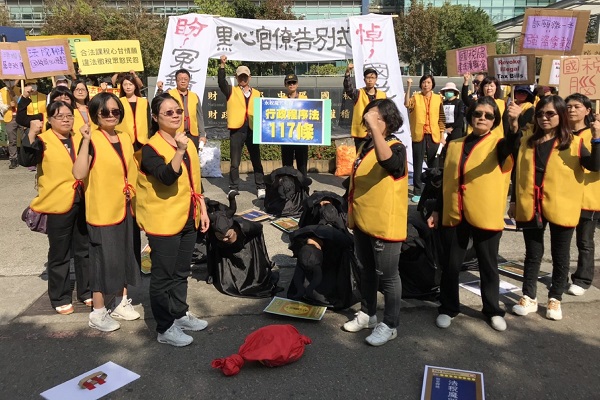 台灣經濟發展日漸艱難,法稅亂象難辭其咎。12月19日上午中區國稅局前,聚集了數百位憂心台灣未來的民眾,他們身著黃背心,大聲呼籲國稅局依行政程序法117條,自行撤銷違法課稅處分,終結被學者專家稱為稅法史上的228事件--太極門稅務假案,讓台灣回歸人權法治正軌。台中市議員賴義鍠也親自到場聲援,與陳情代表遞交抗議書予中區國稅局,由服務科許科長代表局長蔡碧珍接受。