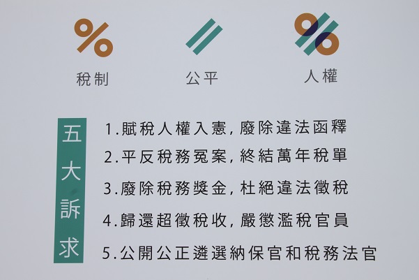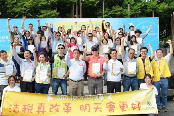 法稅改革聯盟今天(1日)在全台北中南舉辦稅改希望工程,以健走、親子嘉年華會、講座方式,希望讓民眾了解「法稅大小識」,認識台灣稅制的不公不義,將4年來超徵的5000多億元還給人民;希望民眾若碰上不該繳的稅單,能大聲跟財政部的違法稅單說「No」,勇於發聲,勇於站出來,人民才有未來,這塊土地才有希望。
