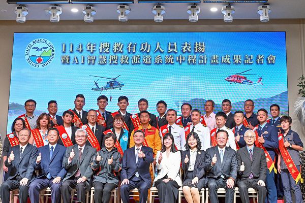 行政院國家搜救指揮中心今(3)日舉行「114年搜救有功人員表揚暨AI智慧搜救派遣系統中程計畫成果記者會」,院長卓榮泰親自表揚並頒獎24名於今年7至9月接連投入颱風、豪雨及花蓮馬太鞍溪堰塞湖溢流的搜救行動之搜救有功人員,肯定其表現。