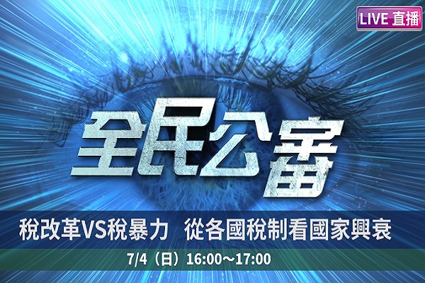 7/4(日)16:00~17:00播出全民公審:「税改革VS税暴力 從各國稅制看國家興衰」線上直播節目,探討與你我息息相關的法稅課題。