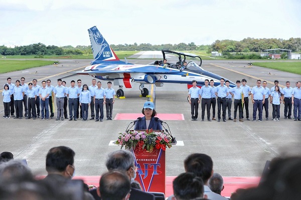 我國國造首架新式高教機「勇鷹」編號 11001,於 22 日在台中清泉崗機場,由蔡總統親臨校閱見證下正式起飛,飛行12分鐘初步性能檢測落地後,由護衛機IDF經國號戰鬥機伴隨高速衝場通過觀禮台致意,象徵著「國機國造」薪火傳承。