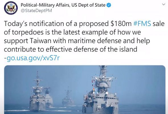 ...總統蔡英文及副總統賴清德就職當天,美國國務院宣布批准對台軍售,將出售18枚MK-48 AT重型魚雷,金額達1.8億美元,此項軍售已正式知會國會。