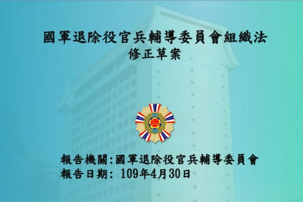 行政院會今日通過人事行政總處簽陳國軍退除役官兵輔導委員會擬具的「國軍退除役官兵輔導委員會組織法」第4條之1、...