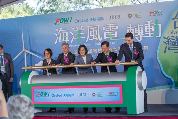 台灣第一座「海洋離岸風場」12日舉行啟動典禮,蔡英文總統出席肯定這座風場的商轉,宣示政府要落實2025年綠電占20%的政策並擴大綠能的目標,讓國內外廠商有信心長期投資台灣,並加速推動智慧電網,組國家隊打進國際綠能供應鏈,把台灣的產品賣到全世界,讓台灣成為亞洲綠能發展中心。
